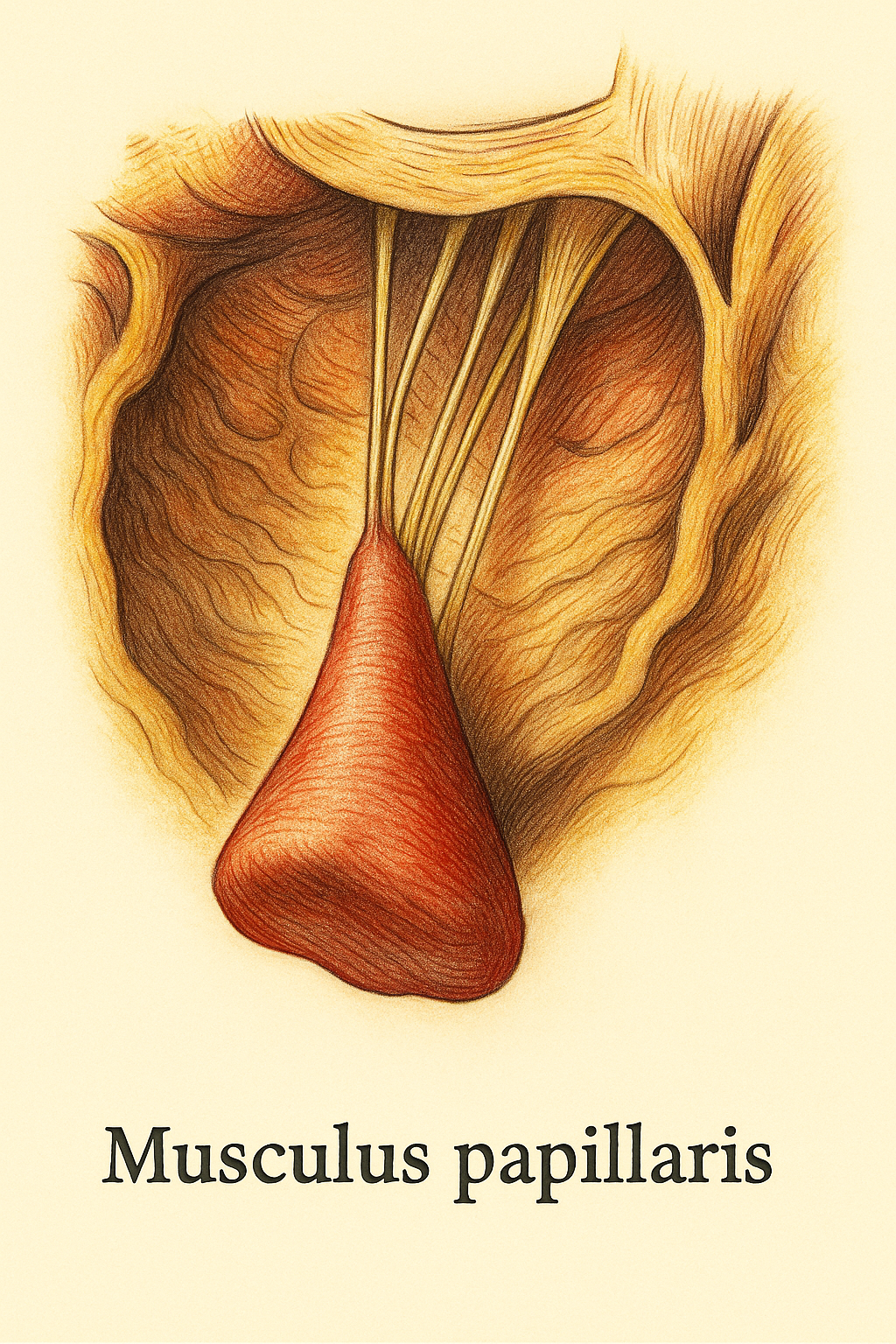 - Sağ Ventrikül**: Triküspit kapağa bağlı çok sayıda papiller kas içerir.