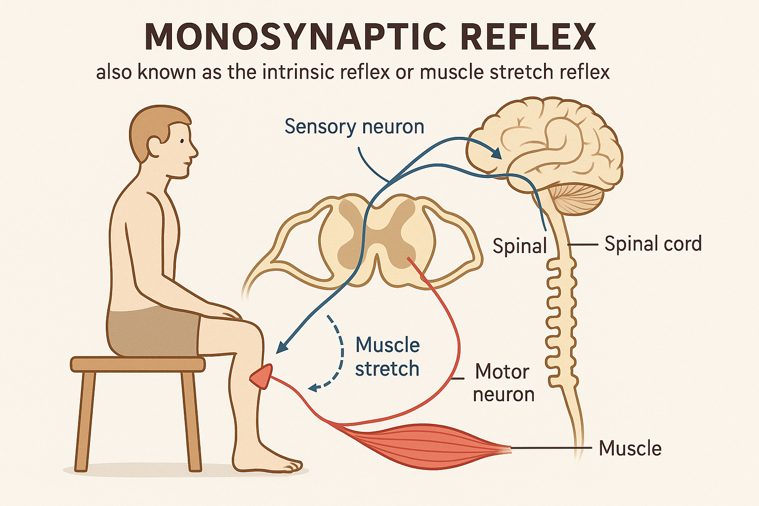- Karşılıklı İnhibisyon: Monosinaptik refleksin bir parçası olmasa da, polisinaptik yollar internöronlar aracılığıyla antagonist kasları (örn. diz refleksindeki hamstringler) gevşetebilir.