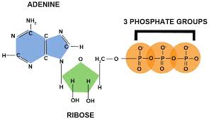 - ATP, gerektiğinde enerji depolarından (glikojen, kreatin fosfat) salınabilir. ATP molekülü bir adenin kalıntısı, şeker riboz ve ester (alfa) ve anhidrit (beta ve gama) bağlarında üç fosfat kalıntısından (alfadan gama’ya) oluşur.