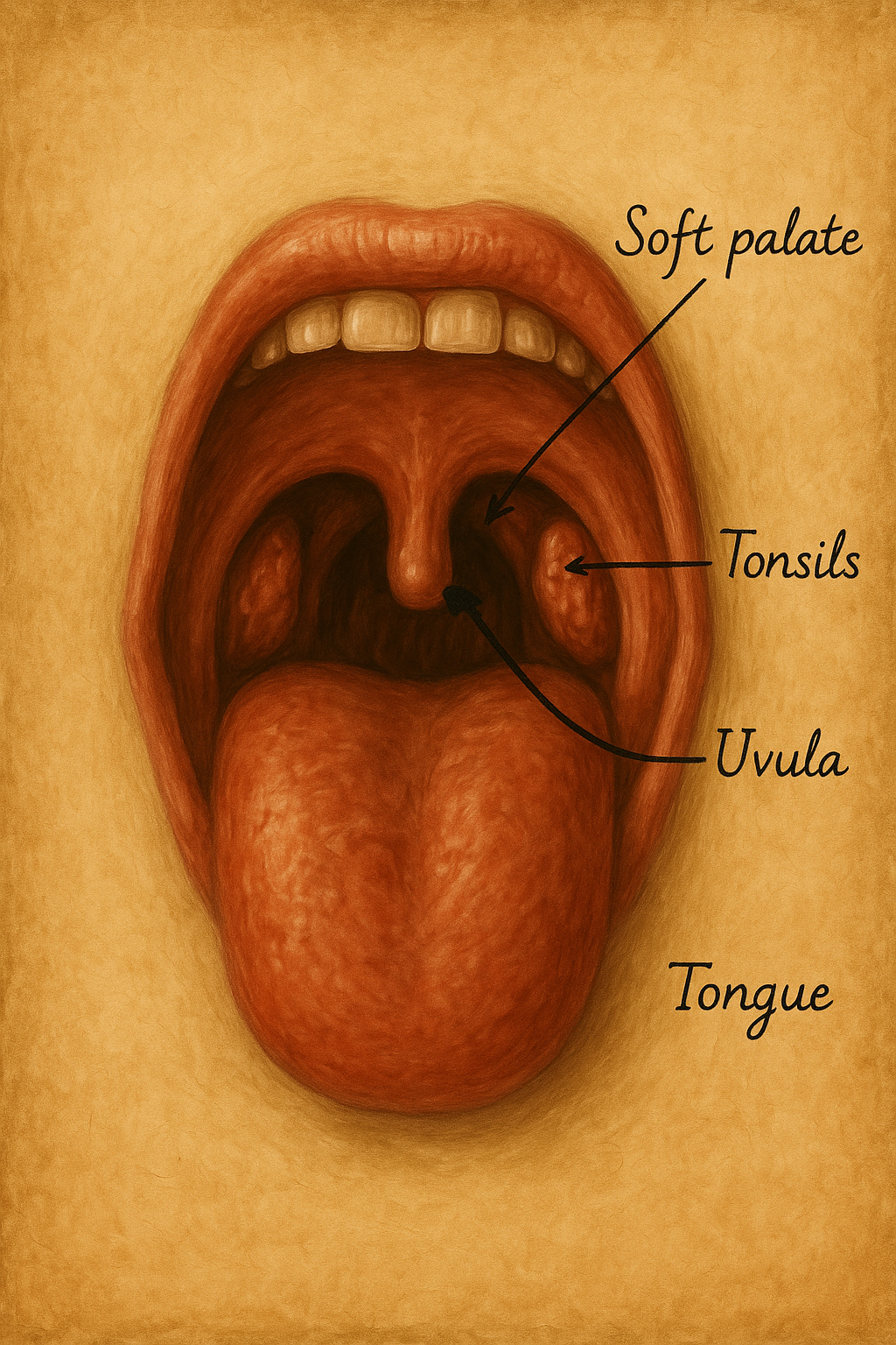 Rönesans ile birlikte anatominin dili keskinleşir. 1543’te Andreas Vesalius, De humani corporis fabrica’da boğazın katmanlı mimarisini tahtaya çiviler gibi sabitler: yumuşak damak, uvula, arka ağız boşluğu, arklar ve derin kıvrımlar. Vesalius’un betimlediği bu kıvrımlar, daha sonra bademciklerin topografyasını okuyacak anatomi kuşaklarına bir harita sağlar. Artık boğaz yalnızca ses ve solunumun koridoru değil; yüzeyi içe çökmüş, kıvrımlarla antijen toplayan bir peyzajdır.
