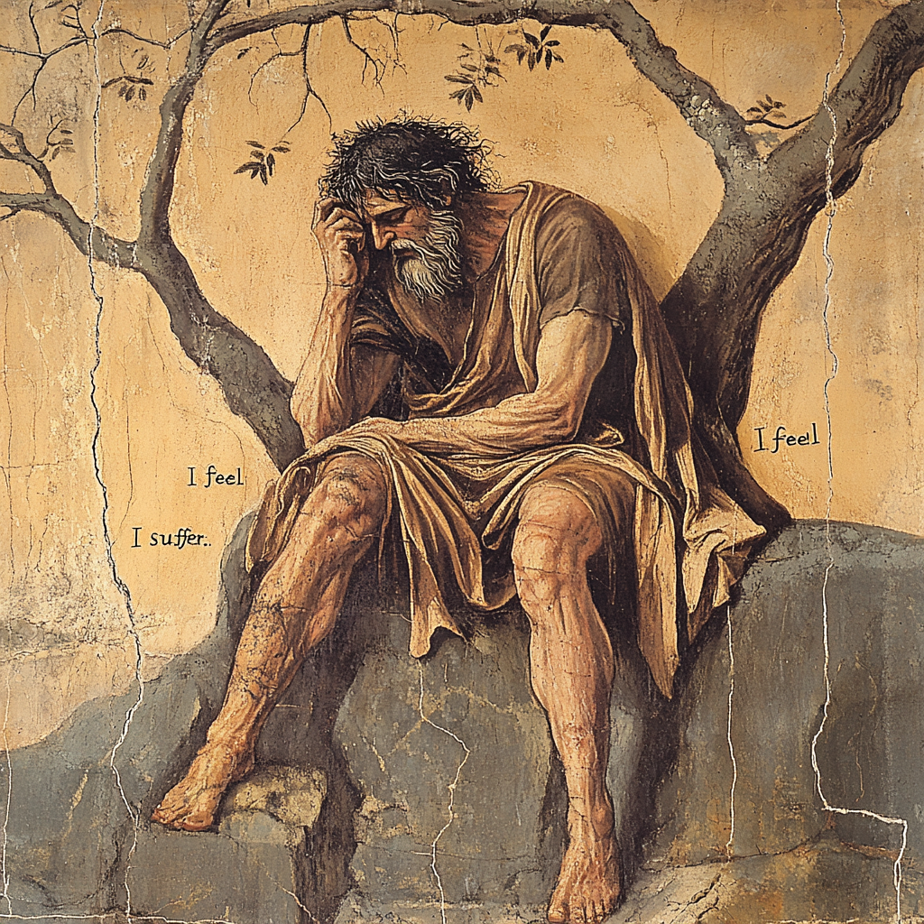 - Acı, ıstırap, sıkıntı: Antik Yunan edebiyatında πάθος’un birincil anlamı genellikle fiziksel acı, ağrı veya sıkıntıya, zorluğa maruz kalma durumuna atıfta bulunur.