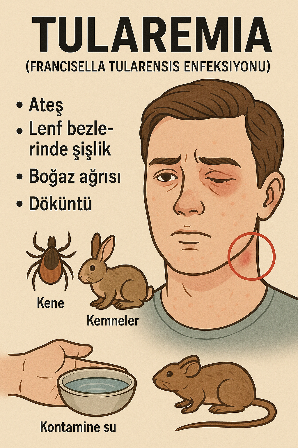 Francisella tularensis, küçük, Gram-negatif, kokobasil şeklinde, zorunlu aerop ve kapsüllü bir bakteridir. Hücre içi paraziti olarak makrofajlar içinde çoğalabilir. Dört alt türü tanımlanmıştır, ancak en fazla patojen olan alt tür Francisella tularensis tularensis (Tip A)’dir. Daha az virülan olan alt tür F. tularensis holarctica (Tip B) ise genellikle Avrupa ve Asya’da, özellikle de Türkiye’de görülmektedir.