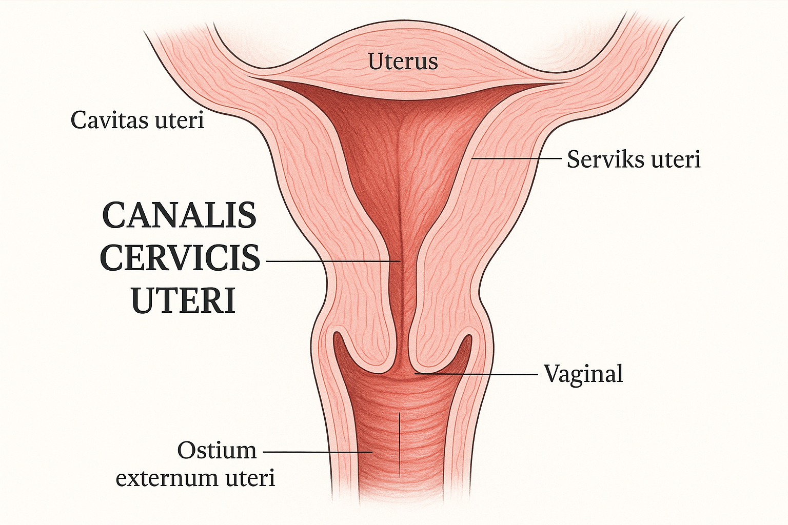 - Canalis Cervicis Uteri (Servikal Kanal): Serviks boyunca uzanan ve dış os’u iç os’a bağlayan kanal. Menstrüel döngü sırasında kıvamı değişen servikal mukus üreten bir mukoza ile kaplıdır.