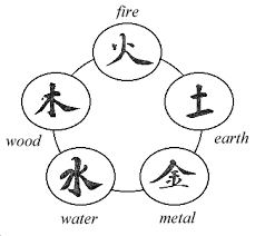 5 element teorisinin temeli, odun, ateş, toprak, metal ve suyun birbiriyle yakından ilişkili olduğu (ahşap ateşi yaratır, ateş toprağı yaratır, toprak metal olur, su metal üzerinde yoğunlaşır, su ahşabı besler vb.) .). Bu beş element doktrini, geleneksel Çin tıbbında (TCM) insan organ sistemine erişimi oluşturur.