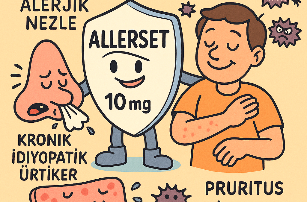 Setirizin dihidroklorür (SDH), hidroksizin molekülünün oksidatif metaboliti olup piperazin iskeletli, ikinci‐kuşak, selektif histamin-1 (H1) reseptör antagonistidir. ALLERSET® formülasyonunda 10 mg SDH’ye ek olarak mısır nişastası, laktoz monohidrat, povidon (K-30), magnezyum stearat, Eudragit E-100 esaslı film kaplama, polietilen glikol 6000, titanyum dioksit ve talk bulunur. pH-duyarlı polimerik film tabakası, gastrik mukozal iritasyonu azaltırken etkin maddenin ince barsakta çözünmesini optimize eder. Molekül düşük lipofilisiteye ve P-glikoprotein substrat özelliğine sahip olduğundan santral sinir sistemi penetrasyonu sınırlıdır; bu da sedatif profilini minimal hâle getirir.