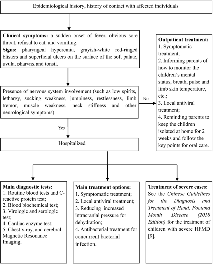 - Klinik olarak, özellikle bademcikler ve damak arkları bölgesinde, ateş, genel hastalık hissi, baş ağrısı, boğaz ağrısı ve yutma problemlerinin eşlik edebildiği ağız mukozasının herpetiform bir enantemi vardır.