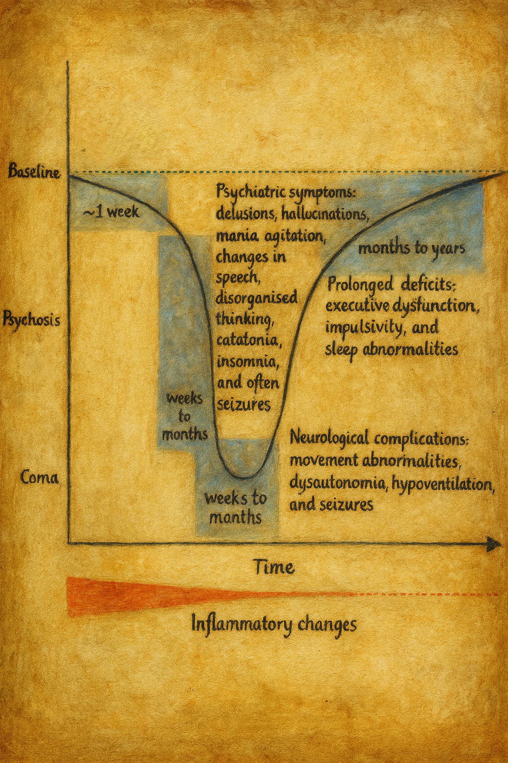 - Son aşamada psikiyatrik belirtiler ve kognitif bozukluklar düzelme eğilimi gösterir; ancak bazı hastalarda kalıcı dikkat ve bellek sorunları, yürütücü işlevlerde hafif bozulma devam edebilir.