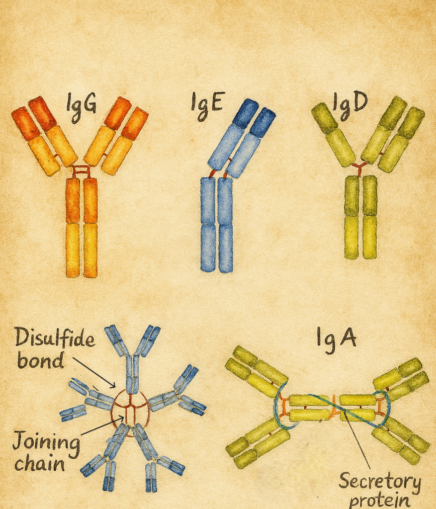 - Birkaç alt sınıfa ayrılır (IgG1, IgG2, IgG3, IgG4); her birinin kompleman aktivasyonu, reseptör afinitesi ve antijen tipine göre farklı rolleri vardır.