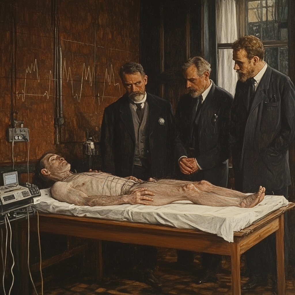 - 1870’ler: John Burdon-Sanderson ve Henry Newell Martin hayvanlarda kalp kasını incelemek için erken elektrofizyolojik araçları kullanırlar. Kalplerin tamamen durma durumuna girebildiğini ve bunun fibrilasyondan farklı olduğunu gözlemlerler; bu da önemli bir kavramsal dönüm noktasıdır.