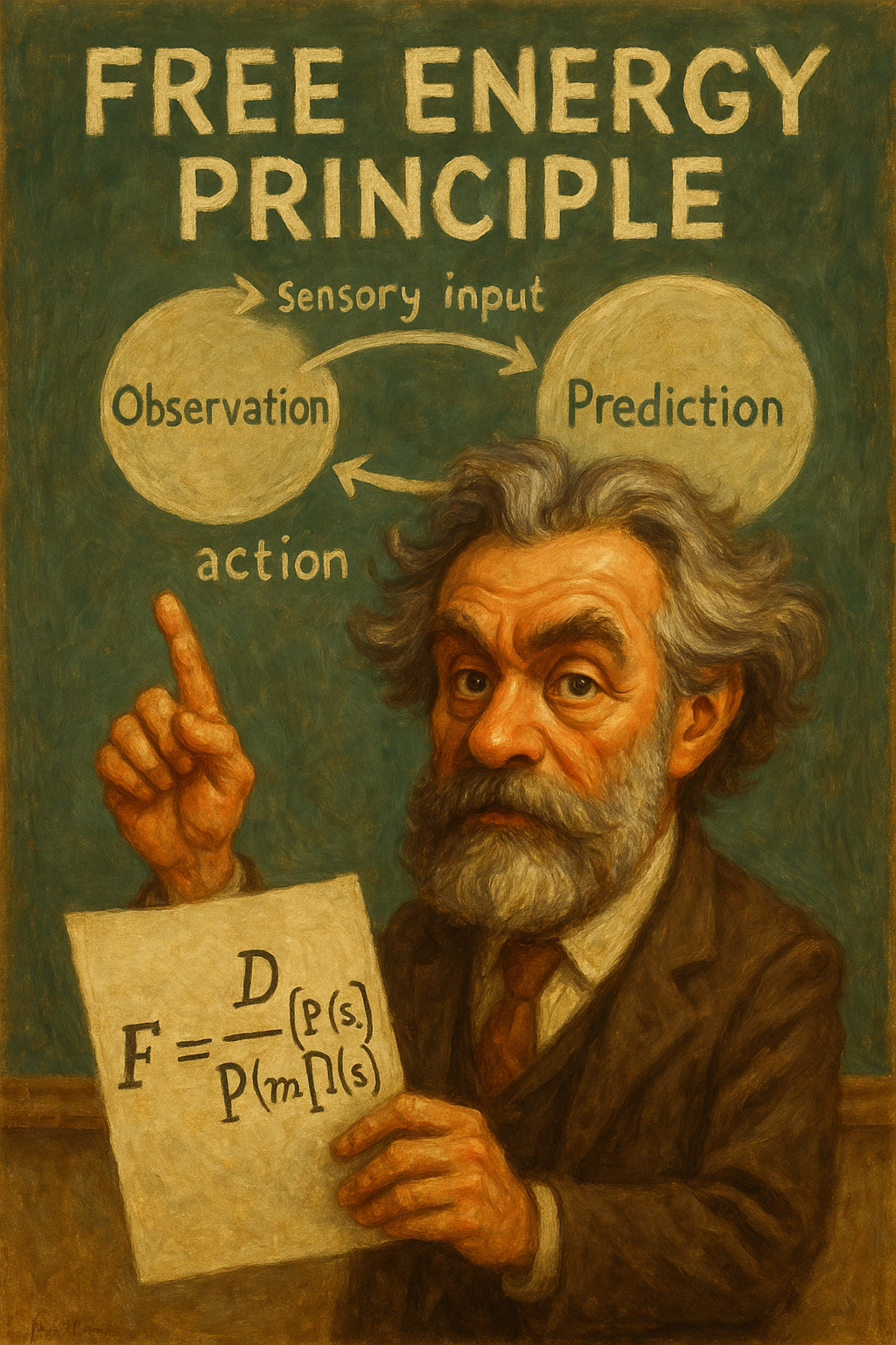 - Hermann von Helmholtz (1860), algının bilinçsiz çıkarım süreciyle çalıştığını savundu. Beynin dış dünyaya dair tahminlerde bulunduğu ve bu tahminleri duyusal bilgilerle karşılaştırarak güncellediği görüşü, Free Energy Principle’ın temelidir.