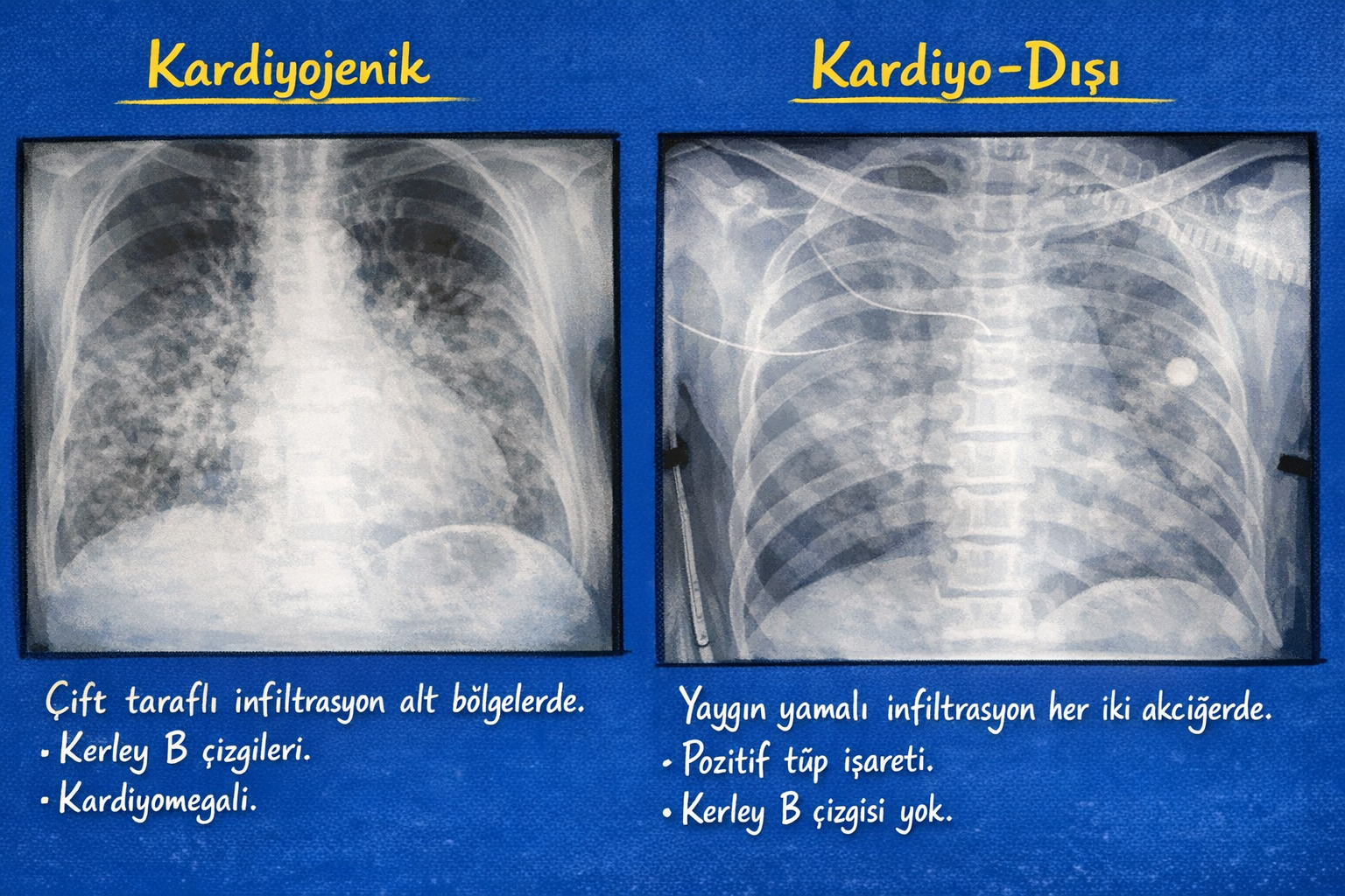 Ve böylece keşif öyküsü, Laennec’in kulağıyla başlayan bir meraktan, günümüzde yapay zekânın kılavuzluk ettiği ultrason probuna; Starling’in denklemiyle başlayan bir fikirden, glikokaliksin moleküler yıpranmasını izleyen biyobelirteçlere; Kerley’nin çizgilerinden, çok-modlu sayısal konjesyon skorlarına uzanır. Akciğer ödemi hâlâ “akciğerin ıslanması”dır, ama artık bunun kaç farklı yolla olabileceğini ve hangi yolun hangi tedaviyi çağırdığını giderek daha iyi biliyoruz.