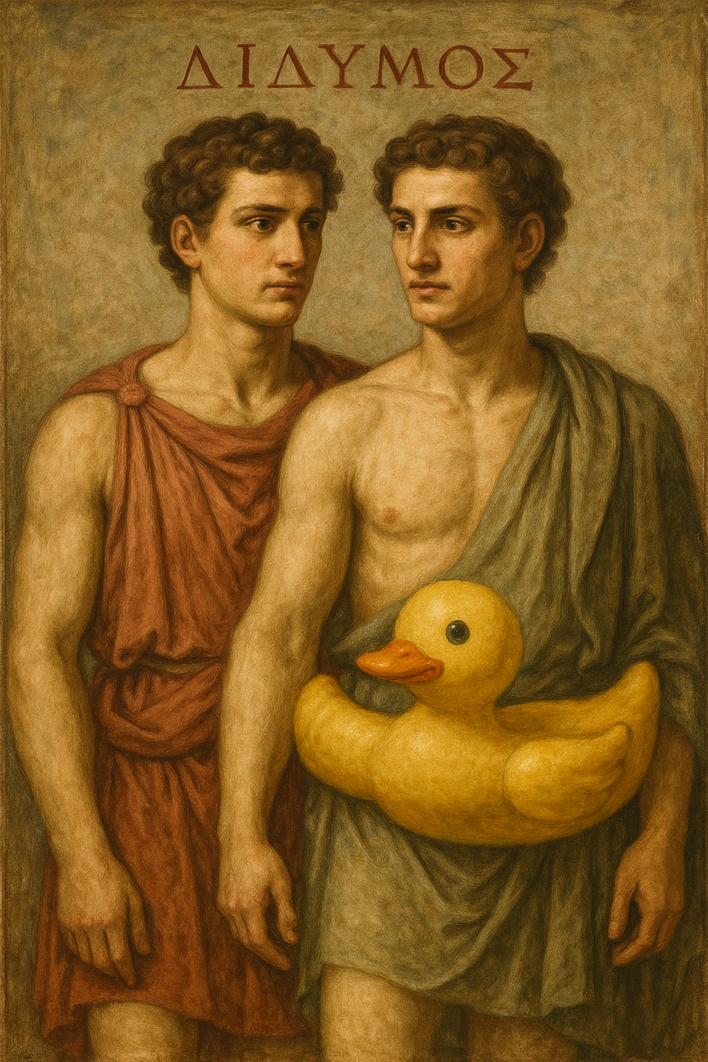 Didymos (Δίδυμος), Antik Yunanca’da “ikiz” anlamına gelen bir kelimedir ve tarih boyunca farklı bağlamlarda kullanılmıştır. Antik Yunan mitolojisinde, en bilinen kullanımlarından biri Dioskourlar (Kastor ve Polydeukes/Polluks) ile ilgilidir; bu ikizler, “Didymoi” olarak adlandırılırdı ve tanrı Zeus’un oğulları olarak kabul edilirdi. Ayrıca, “Didymos” ismi Helenistik dönemden itibaren çok sayıda gerçek kişinin de adı olmuştur. En meşhurlarından biri, M.S. 1. yüzyılda İskenderiye’de yaşamış olan ünlü gramerci ve bilgin Didymos Chalkenteros’dur. Didymos isminin Hristiyanlık’ta da önemli bir yeri vardır: İncil’de Thomas (Didymus) lakabıyla bilinen havari “ikiz” anlamına gelen bu takma adla anılmıştır. Didymos, hem mitolojik hem de tarihsel kişiliklerde, Yunanca’da çoğul biçimiyle (Δίδυμοι, Didymoi) veya özel isim olarak, ikiz olgusu ve iki benzer varlık arasındaki ilişkiyi vurgular.