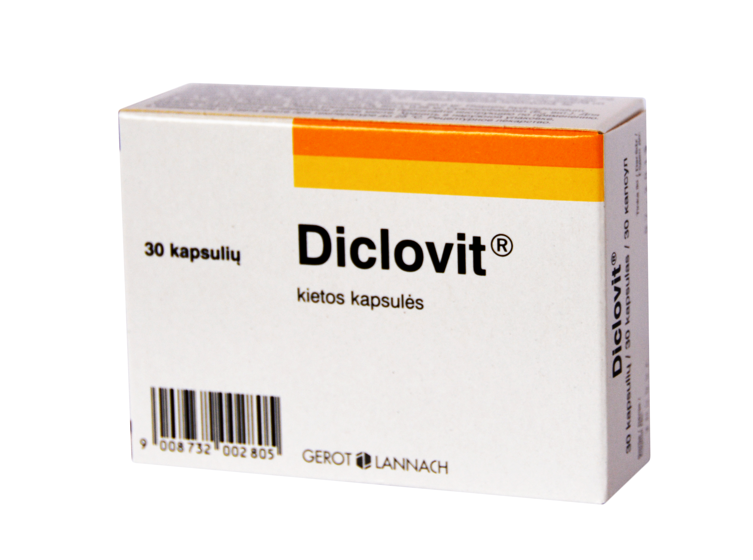 Diclovit® 1 kapsül içindeki etken maddeleri; 25 mg Diklofenak-Natrium, 50 mg Thiaminhidroklorid (Vitamin B1), 50 mg Piridoksinhidroklorid (Vitamin B6), 0,25 mg siyanokobalamin (Vitamin B12).