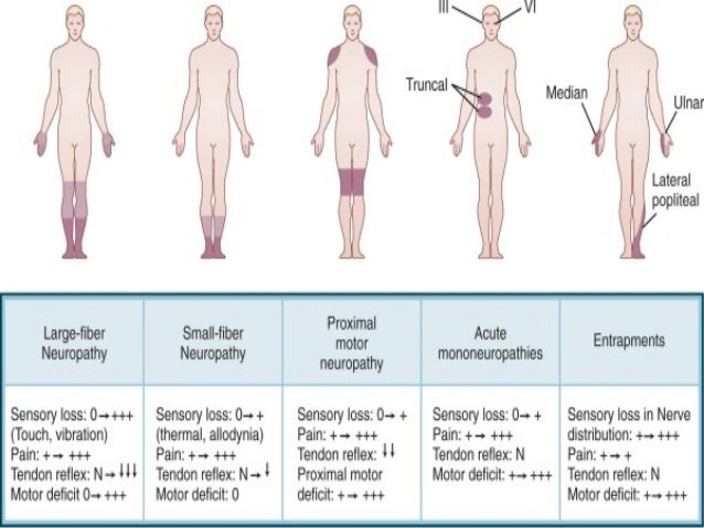 - Tipik olarak, diyabetik polinöropati önce ayaklarda ortaya çıkar ve genellikle simetrik olarak yükselir. Bununla birlikte, diyabetik polinöropati formları da bilinmektedir ve bunlar kendilerini esas olarak otonom sinir sisteminin sinirlerinde gösterir. Diyabetik polinöropati genellikle kendini ilk olarak ayaklarda titreşim duyarlılığının kaybı olarak gösterir.