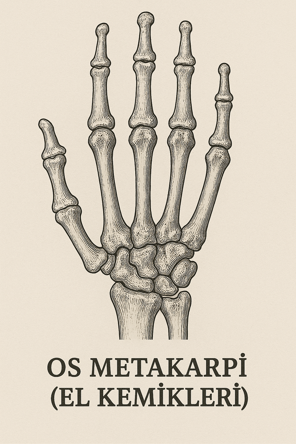 - Os metakarpi, el bileği (karpus) ile parmak kemikleri (falankslar) arasında, avuç içinde yer alan beş uzun kemikten oluşur.