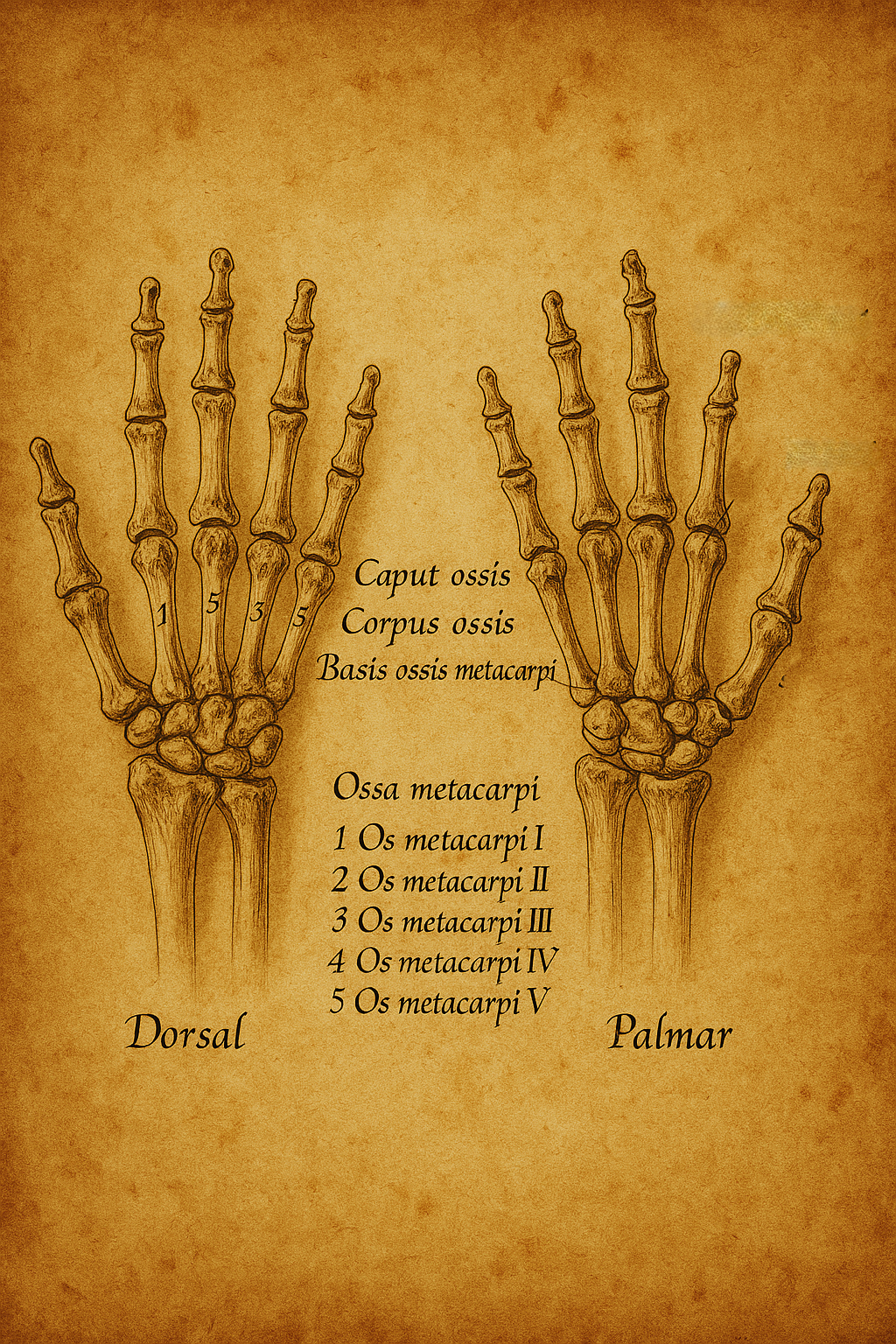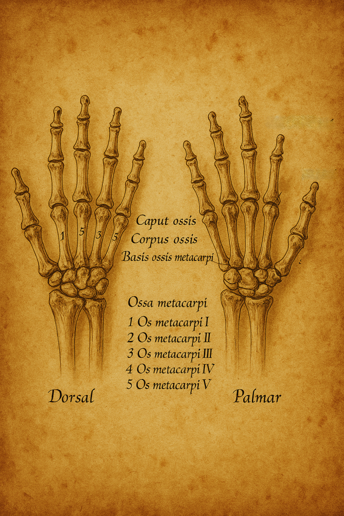 - Özellikle Henry Gray’in “Gray’s Anatomy” (1858) adlı eseri, elin kemik yapısını şemalar ve metinlerle detaylıca işlemiş, metakarpal kemikler bugünkü terminolojisiyle yer bulmuştur.
