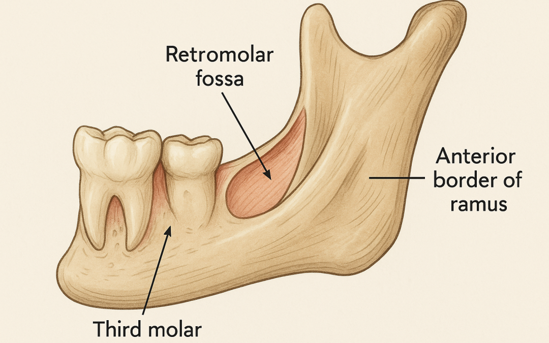 Retromandibular fossa, çeşitli damarları, sinirleri ve parotis bezinin parçalarını içeren, komşu kaslar ve kemikler tarafından tanımlanan anatomik bir boşluktur. Baş ve boynun birleştiği yerde bulunur. (Bkz; Fossa) (Bkz; retro-mandibul–aris)