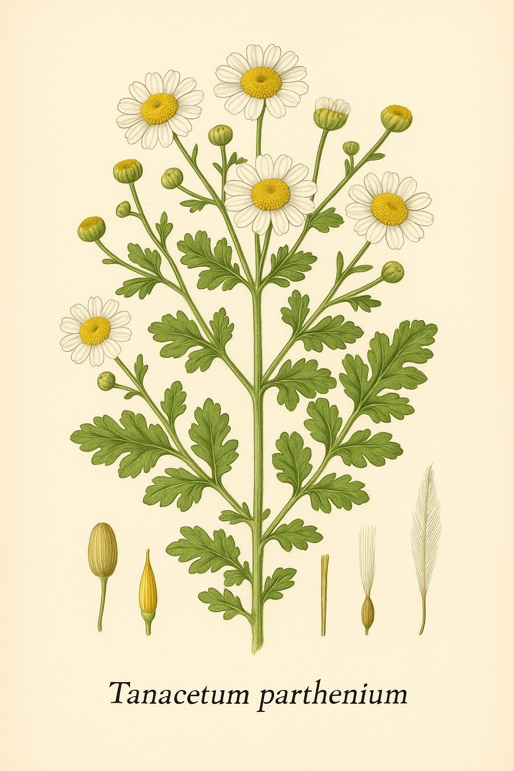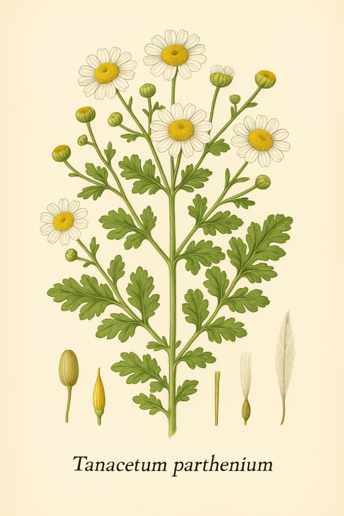 - Parvez, M. K., & Rishi, V. (2021). Tanacetum parthenium: Traditional uses, phytochemistry, pharmacology, and toxicology. Phytotherapy Research, 35(10), 5634–5654.
