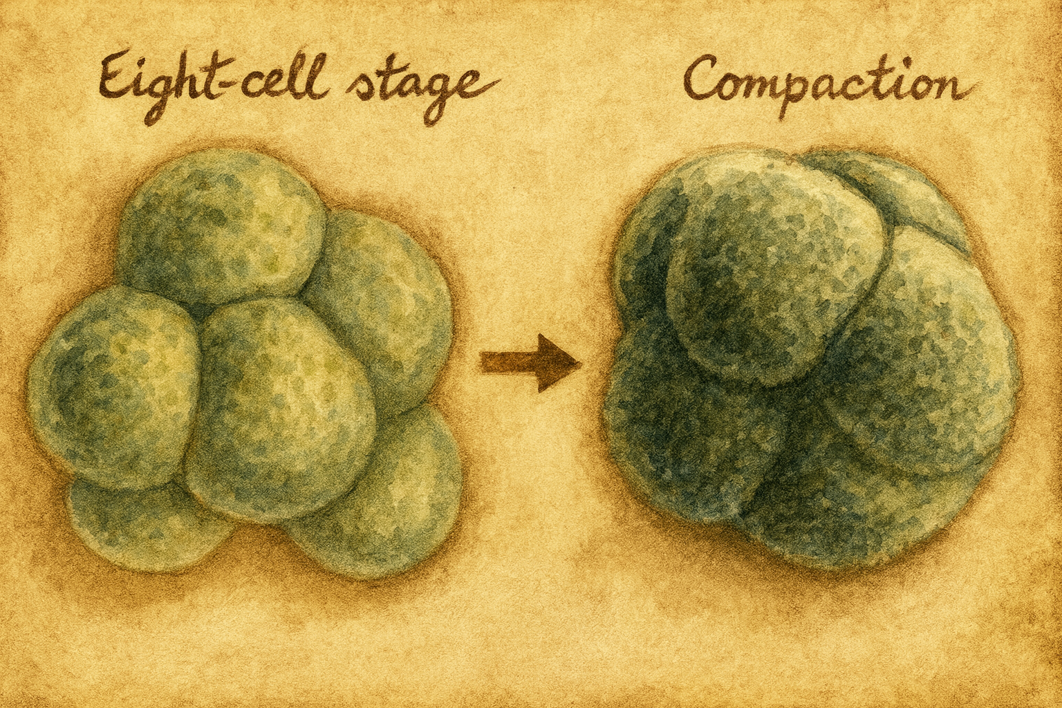 Kompaksiyon; (i) E-kadherin aracılı adezyonun artışı, (ii) aktomyozin kasılmalarının apikal bölgede yoğunlaşması, (iii) PAR/aPKC ile apikal-bazal polaritenin yerleşmesi ve (iv) Hippo-YAP/TAZ ekseni üzerinden transkripsiyonel kader programlarının açılması ile, morula-blastokist geçişinde morfolojik, mekanik ve genetik düzlemleri birbirine “tutturur.” Dış hücrelerde TE epitelinin inşası ve içte ICM’in korunması, implantasyon ve plasentasyonun hazırlığıdır; kavramsal olarak “kompaksiyon,” Latince kökeninin ima ettiği gibi, ilerideki gelişimsel mimarinin kilit taşlarını bir araya bağlayan kurucu eylemdir.