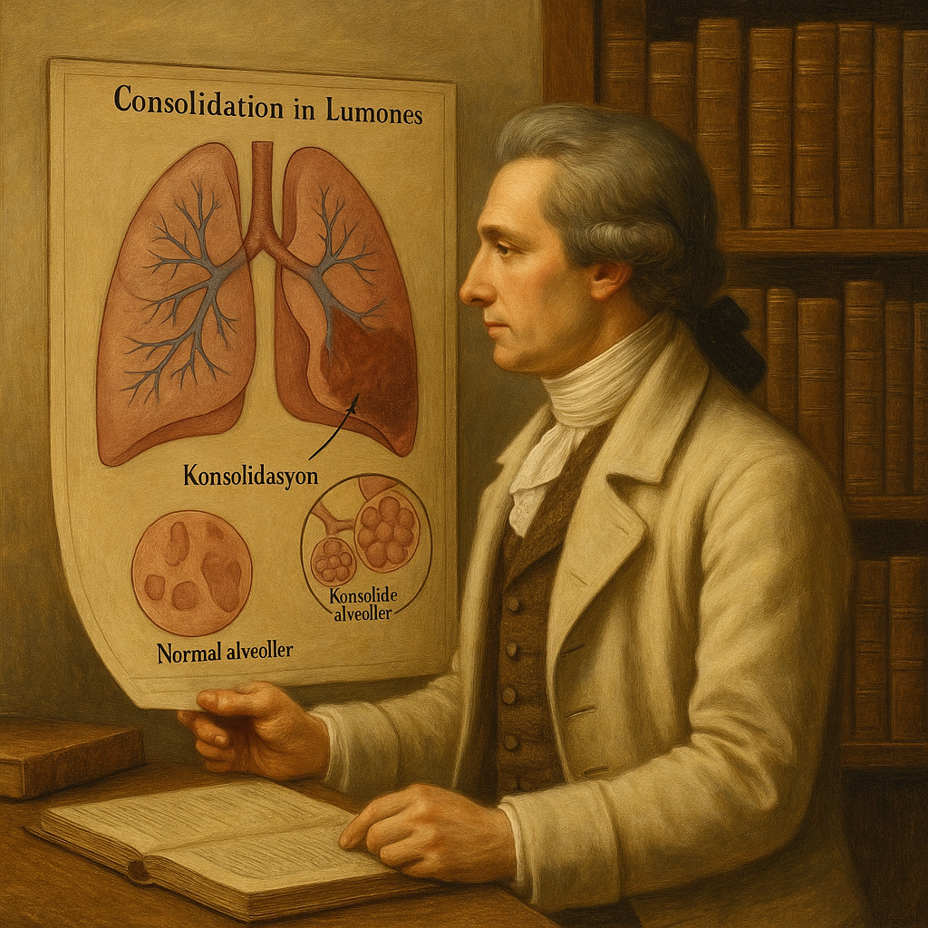 - yüzyılda, otopsiye dayalı klinik-patolojik korelasyon yöntemlerinin sistematikleştirilmesiyle birlikte, konsolidasyonun tanımı önemli ölçüde derinleşmiştir. Bu dönemin önde gelen figürlerinden biri olan İtalyan anatomo-patolog Giovanni Battista Morgagni (1682–1771), pnömonili akciğerlerin morfolojik yapısını mikroskobik düzeyde tanımlayan ilk isimlerden biri olarak kabul edilir.