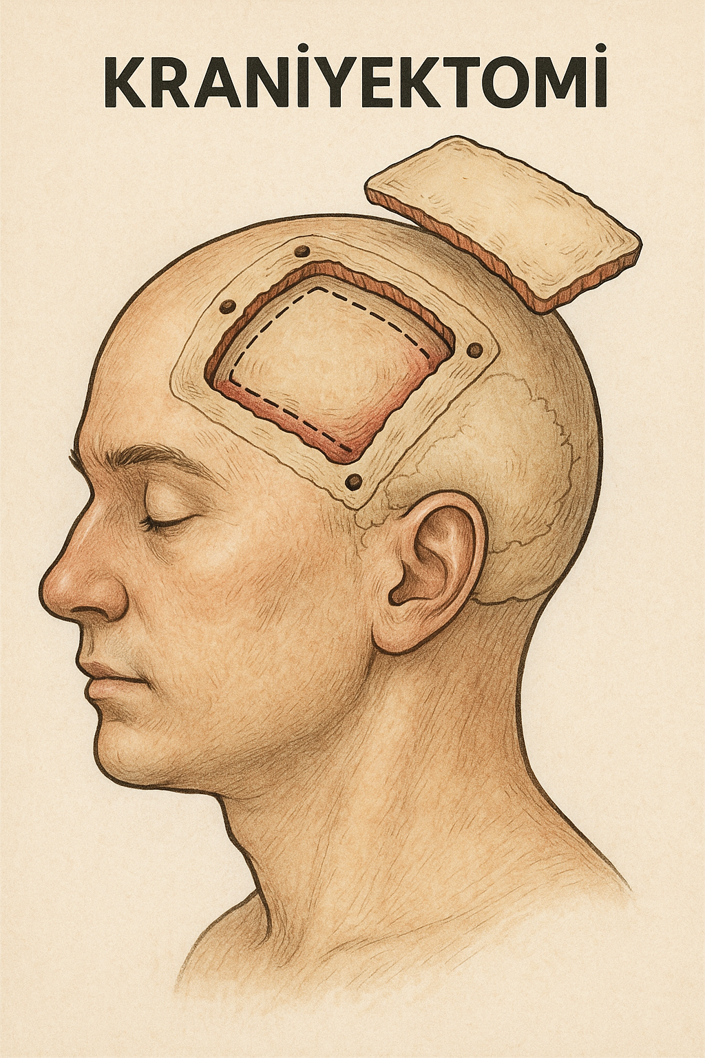 - Kafatasının belirli bir bölgesindeki tüm kemik parçalarının çıkarılmasıdır.