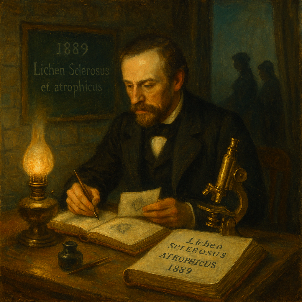 Birkaç yıl geriye, 1885’e gidersek Viyana’da jinekolog Friedrich von Breisky’nin “kraurosis vulvae” dediği, vulvanın ilerleyici büzüşmesi ve incelmesi olarak tarif ettiği bir sendrom görüyoruz. Breisky’nin çizdiği resim, fenomenin jinekolojik yüzünü yakalıyordu; ama o, bugün anladığımız anlamda LS’nin deri bilimiyle yoğrulmuş bir adını koymamıştı. Hallopeau’nun 1889’daki isimlendirmesi bu yüzden dönüm noktası sayılır: LS, jinekolojik bir “atrofi” olmaktan çıkıp, kendine ait bir dermatolojik antiteye dönüştü.