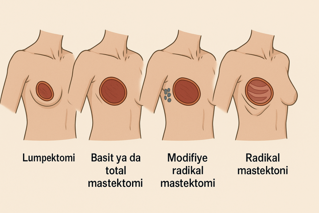 - Segmental Mastektomi: Tümör ve çevresindeki daha geniş bir doku parçasının, çoğu zaman göğüs kası fasyasıyla birlikte çıkarılması.