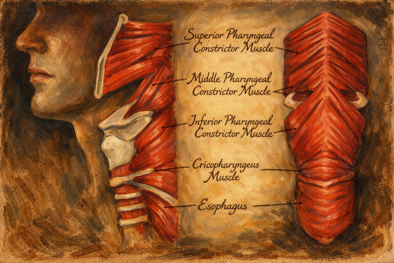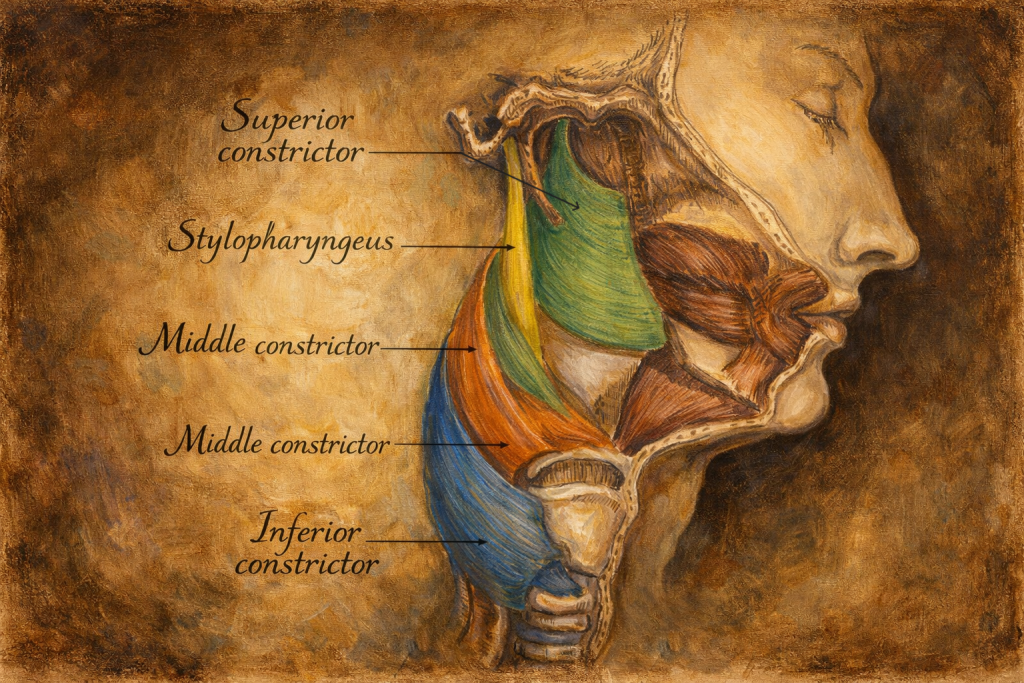 İlk bakışta farinks duvarını “sıkan” üç tabakalı bir kas halkası gibi görünen musculus constrictor pharyngis (superior–medius–inferior), anatomi tarihinde aslında iki ayrı merak hattının kesişim noktasında olgunlaştı: (1) yutmanın itici gücü nereden doğar? sorusu ve (2) hava yolunu koruyan kapak–sfinkter düzeni nasıl işler? sorusu. Bu iki soru, yüzyıllar boyunca diseksiyon masasında, klinikte boğulan hastanın yanında ve sonunda basınç sensörleriyle dolu modern laboratuvarlarda birbirine bağlandı.