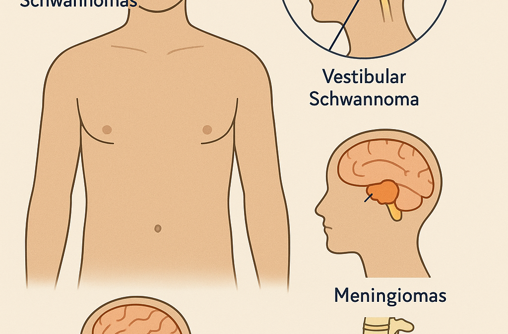 - İki taraflı vestibüler schwannomlar (akustik nörinomlar): Hastaların >%90’ında görülür; işitme kaybına, kulak çınlamasına ve denge sorunlarına neden olur.