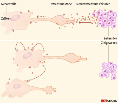 Nörotrofik maddeler (nörotrofinler), sinir hücresinin veya aksonun ‘hayatta kalma faktörleri’dir. Bir aksonun büyüme konisi, nörotropinlerin etkisi altında hedefine ulaştıysa, nörotrofinler onun sonraki kaderine karar verir: Nörotrofinlerin karışımına bağlı olarak, bir nöronal bağlantı hayatta kalabilir veya kalmayabilir. Nörotrofinler eksikse, bağlantılar tekrar bozulur.