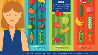 Örneğin, elma, kiraz, kereviz, fındık, kivi, armut, kayısı, çilek veya şeftali yiyen huş ağacı polenine alerjisi olan kişilerde oral alerji sendromu görülür. Ayrıca yakup otu (yaban otu) ve otlara karşı alerji ile ortaya çıkar. OAS, yetişkinlerde en yaygın gerçek gıda alerjilerinden biridir.
