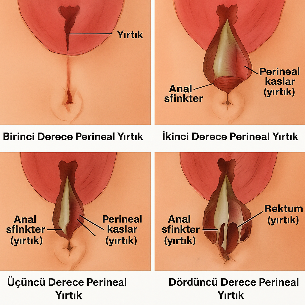 Doğum eylemi sırasında fetüsün vajinal kanaldan geçişi esnasında, perine bölgesinde — yani vulva ile anüs arasında yer alan yumuşak doku bölgesinde — çeşitli derecelerde travmatik yırtılmalar meydana gelebilir. Bu yırtılmalar, vajinal mukozadan başlayarak deri, subkutan dokular, pelvik taban kasları ve hatta anal sfinkter kompleksine kadar derinleşebilir. Bu tür travmalar genel olarak doğumla ilişkili yumuşak doku yaralanmaları olarak tanımlanır ve klinik olarak Uluslararası Hastalık Sınıflandırması (ICD-10) kapsamında O70 koduyla tanımlanır.