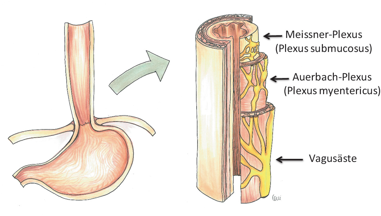 - Bağırsak duvarındaki sinir hücresi ağları tarafından bağımsız olarak (‘otonom olarak’) kontrol edilir ve vejetatif sinir sistemi tarafından modüle edilir.