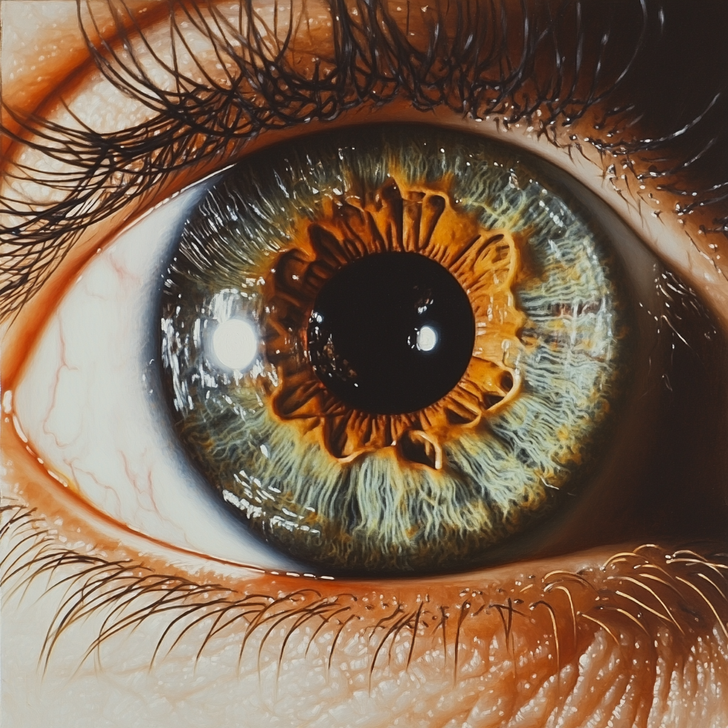 - Orta-periferik iris transillüminasyon kusurları: Pigment kaybına bağlı radyal tel benzeri desenler.