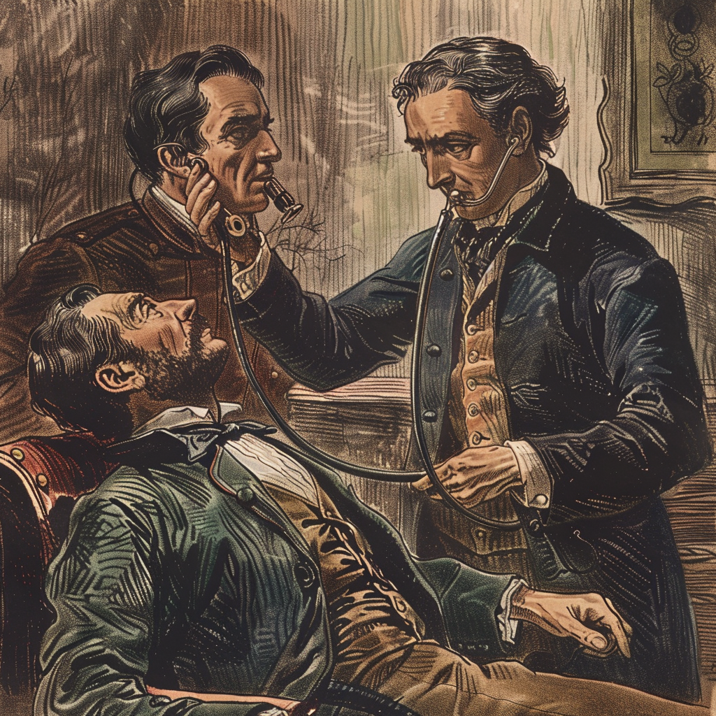 - Laennec’in İcadı (1816): René Laennec’in stetoskopu icadı, ilk kez akciğerlerin ve kalbin oskültasyonuna olanak sağladı ve azalan nefes seslerinin ve rezonanslı perküsyon notalarının tespiti yoluyla pnömotoraksın teşhisi için kritik bir araç sağladı.