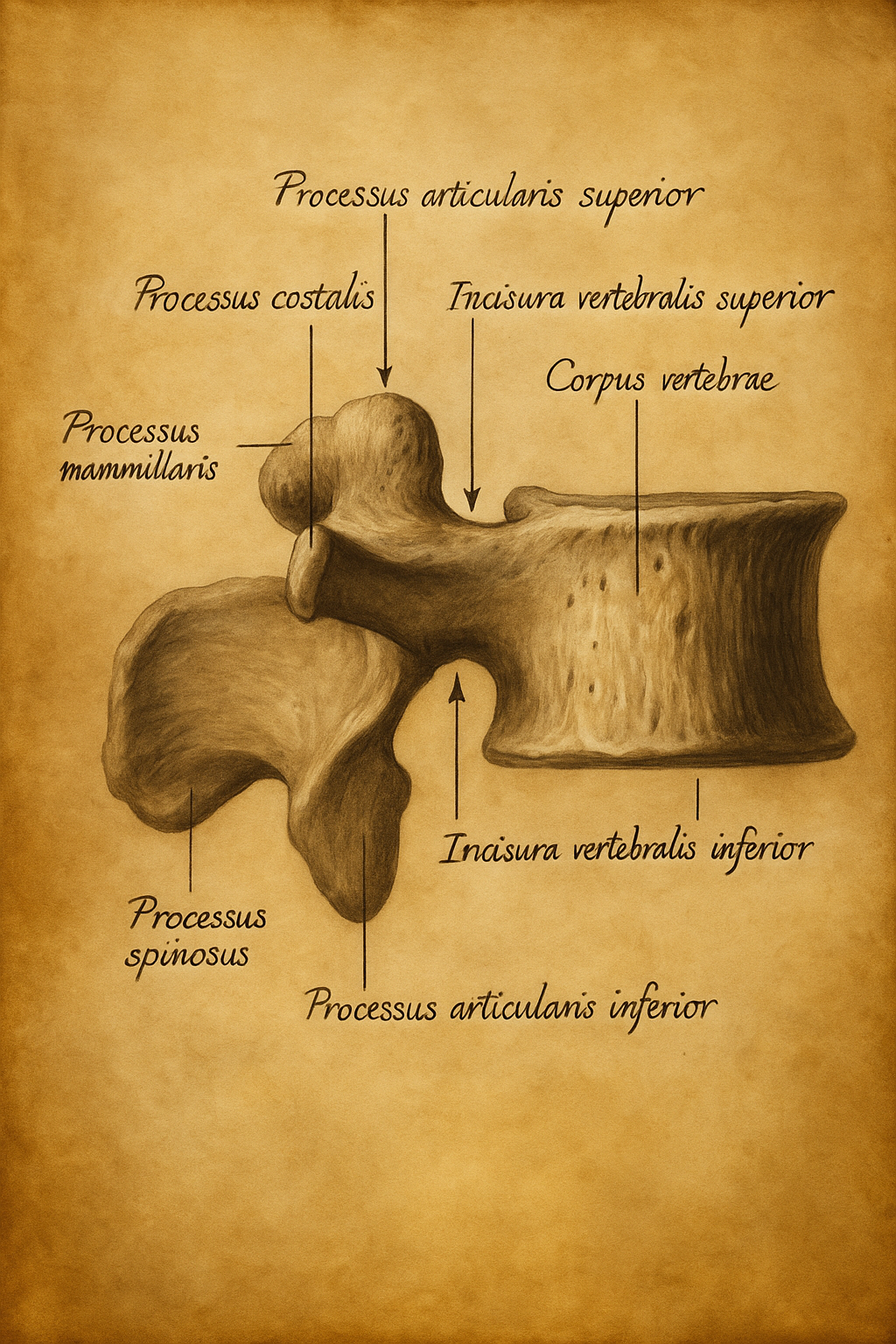- Processus mamillaris: Üst eklem çıkıntısının arka-dışında; m. multifidus başta olmak üzere derin ekstansörlerin entezis alanı.