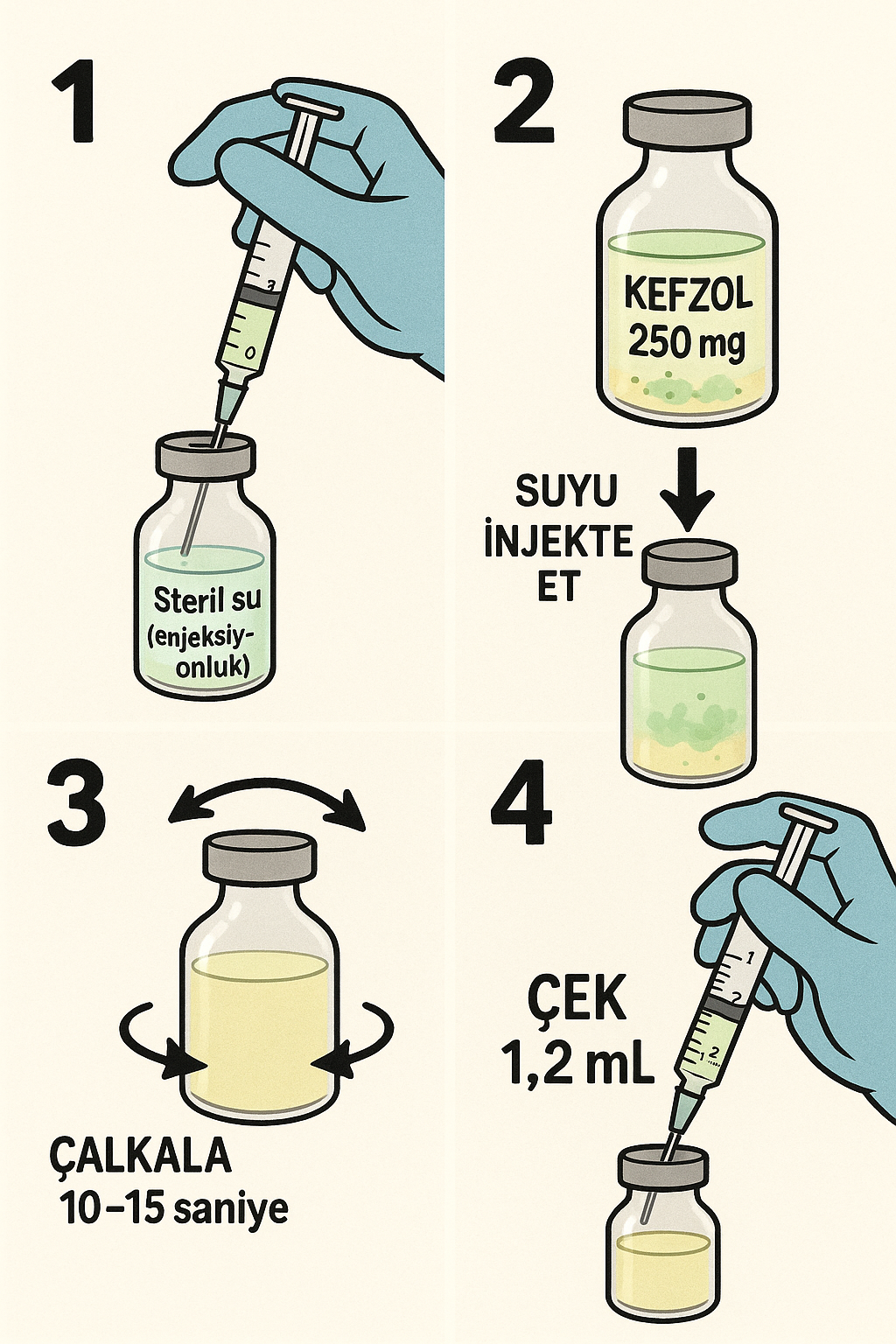 Rekonstitüsyon genellikle doğrudan flakon veya vial içinde gerçekleştirilir. Bu süreçte kullanılan çözücüler (örn. steril enjeksiyonluk su, izotonik sodyum klorür çözeltisi) ilaç monografisine uygun olarak seçilmelidir.