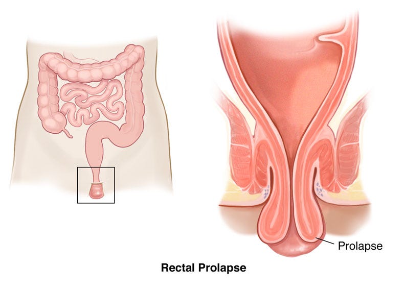 Sadece üst anal kanalın veya alt rektumun mukoza zarı anal kanaldan dışarı çıkarsa, anal prolapsustan bahsedilir (= yanlış prolapsus).