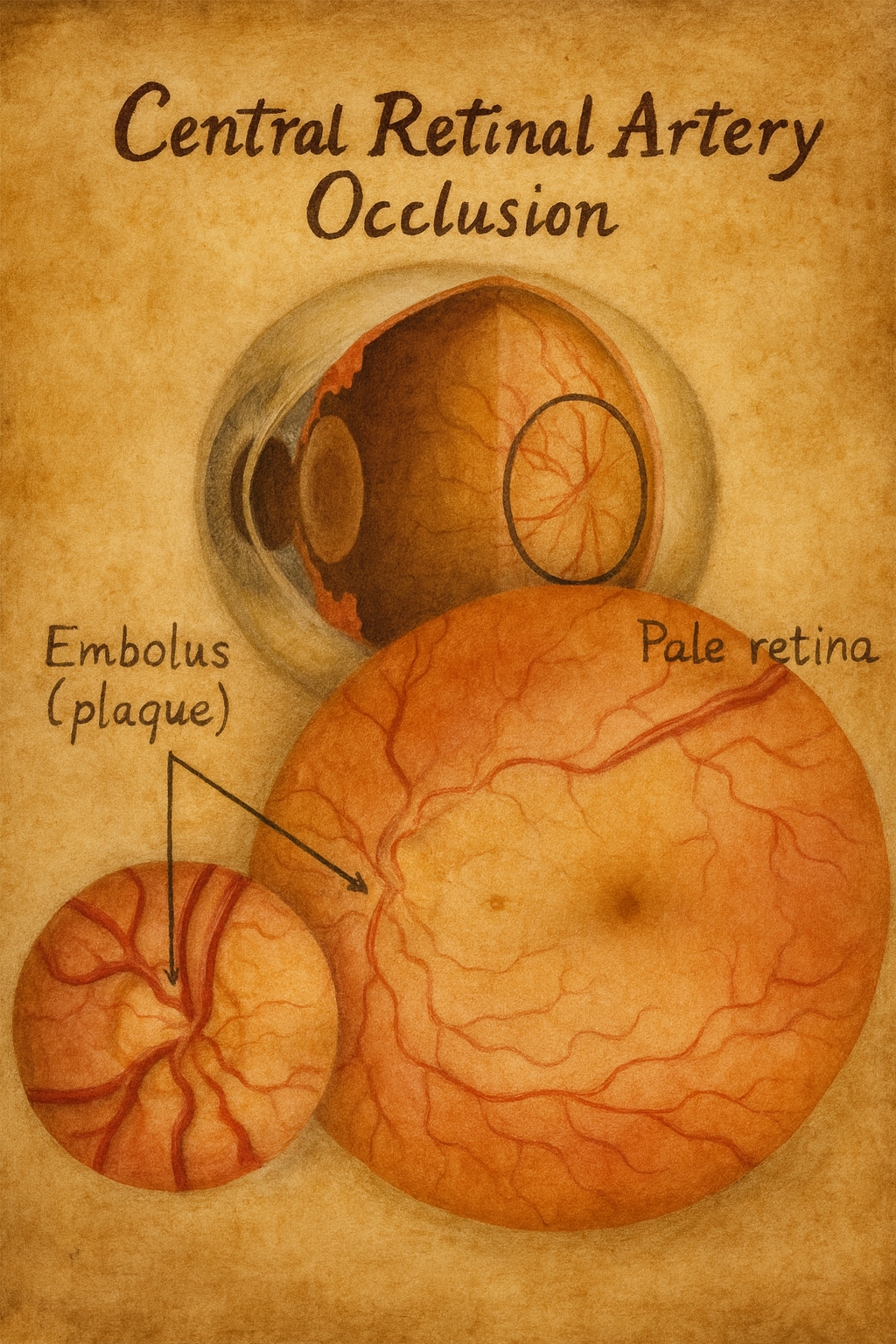 Böylece “santral retinal arter tıkanıklığı” terimi, retinanın merkezî arterinin kapanması ile uyumlu net bir patofizyolojik tanımlama sunar.