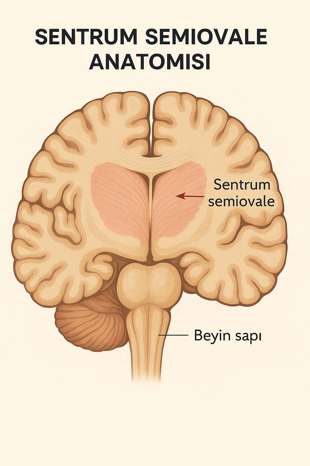 Centrum semiovale serebral hemisferlerin üst bölgesinde bulunan beyaz cevher yapılarından biridir ve frontal, parietal ve oksipital lobların derinliklerinde yer alır. Anatomik konumu aşağıdaki referanslarla açıklanabilir: