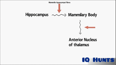 - Papez dairesinde singulat girus, anterior talamik çekirdekler, presubikulum ve entorhinal alan arasında bir bağlantı oluşturur.