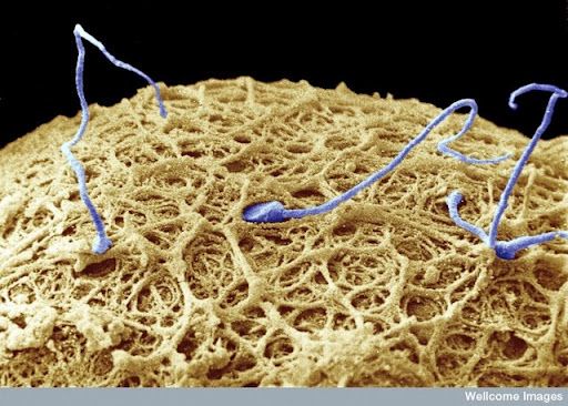türemiştir. Bu kelimede Antik Yunancadaki σπέρμα (spérma, “tohum, semen”) kelimesinden türeyen Latincedeki sperma kelimesinden türemiştir.