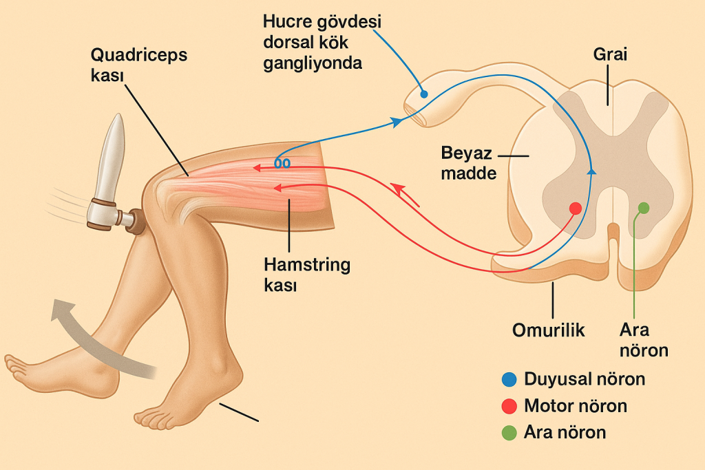 - Reciprocal İnhibisyon: Hamstring (semitendinosus, semimembranosus, biceps femoris) kasları inhibitör internöronlar aracılığıyla baskılanır.