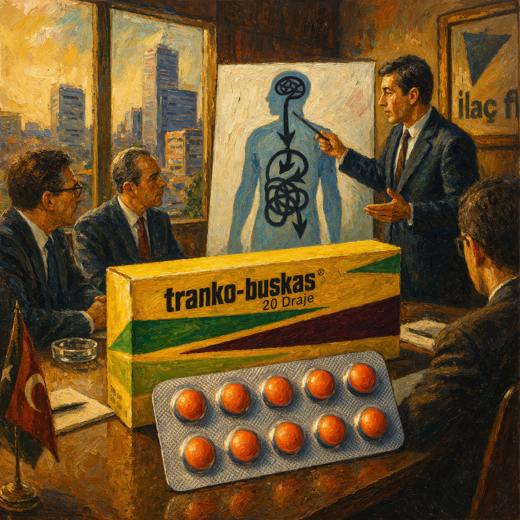 10 mg hiyosin-N-bütil bromür (bir antispazmodik) ve 10 mg medazepam (anksiyolitik ve kas gevşetici özelliklere sahip bir benzodiazepin türevi) içeren bir kombinasyon ürünüdür.