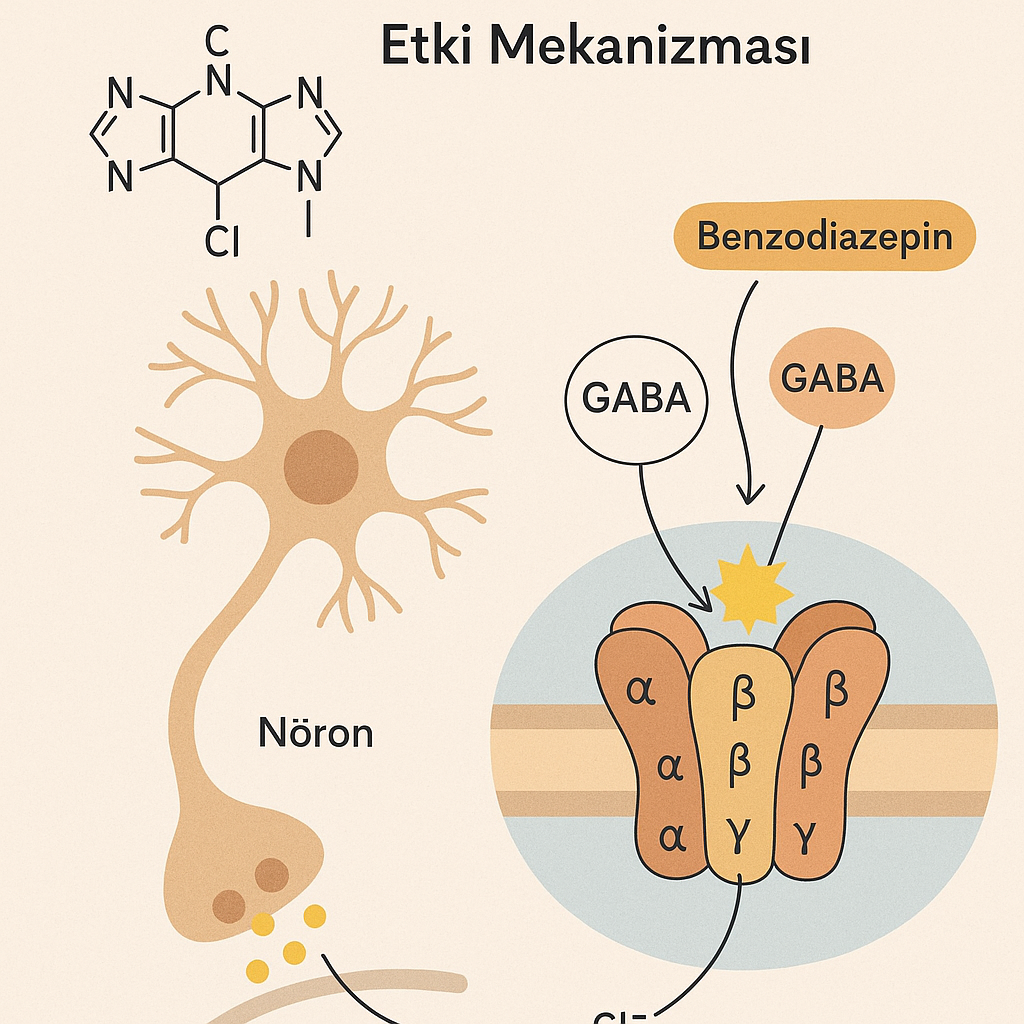 Triazolam, bir triazolobenzodiazepin, merkezi sinir sistemi (MSS) içindeki gama-aminobütirik asit tip A (GABA_A) reseptörlerindeki spesifik benzodiazepin reseptör bölgelerine bağlanarak farmakolojik etkilerini gösterir. Bu bağlanma, başlıca inhibitör nörotransmitter olan GABA’nın reseptörüne olan afinitesini artırarak klorür iyon kanallarının daha fazla açılmasına yol açar. Klorür iyonlarının ortaya çıkan akışı, nöronal zarların hiperpolarizasyonuna neden olur, böylece onları stabilize eder ve nöronal uyarılabilirliği azaltır. Bu mekanizma, triazolamın yatıştırıcı, anksiyolitik, kas gevşetici ve antikonvülsan özelliklerinin altında yatar.