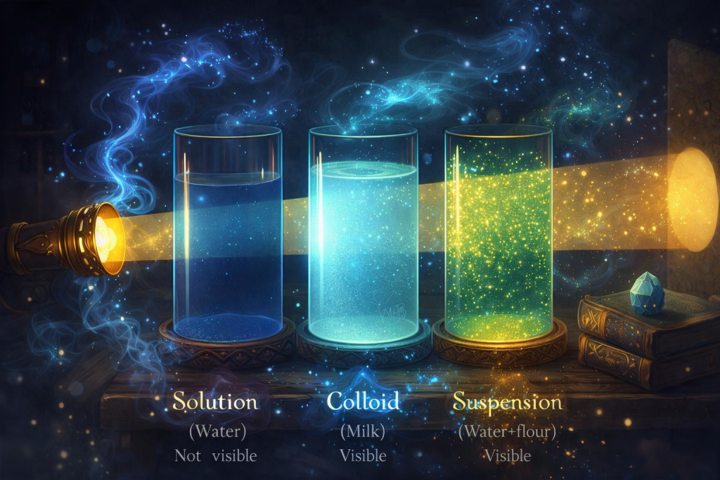 Tyndall’ın temel katkısı, ışığın kolloid boyuttaki parçacıklar tarafından saçıldığında ışık demetinin yolunun görünür hale geldiğini deneysel olarak göstermesiydi. Saf hava ya da saf sıvı içinde ilerleyen ışık görünmezken, ortama çok küçük parçacıklar eklendiğinde ışık bir “hüzme” gibi seçilebiliyordu.