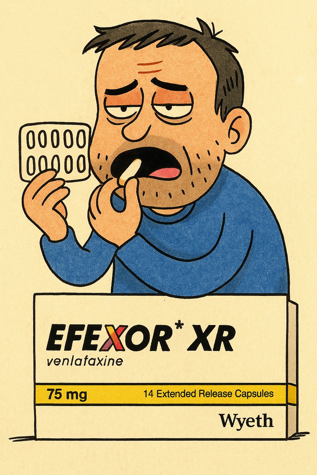 Venlafaksin, serotonin-noradrenalin geri alım inhibitörleri (SSNRI) grubuna ait, depresyon ve anksiyete bozuklukları tedavisinde yaygın olarak kullanılan bir antidepresandır. Hem tablet hem de uzatılmış salımlı kapsül (ER/XR) formlarında pazarlanmakta olup, orijinal formülasyonu Efexor® ER (ABD’de Effexor® XR) adı altında satışa sunulmuştur. 1997 yılında onaylanmıştır ve günümüzde birçok jenerik formu mevcuttur (örn. Venegis®).