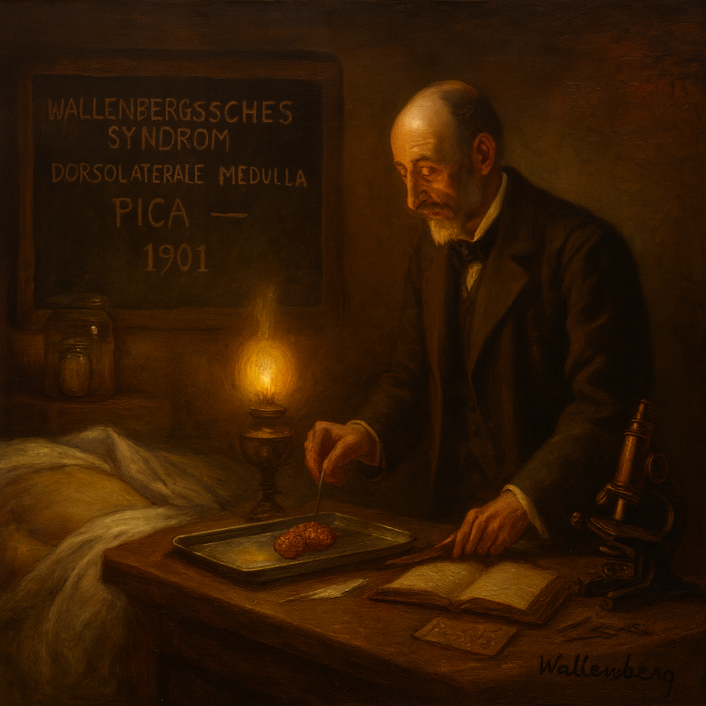 1901’de Wallenberg, aynı örüntüdeki bir olguyu otopsiyle doğrular; lezyon dorsolateral medulladadır ve beslenme alanı posterior inferior serebellar arter (PICA) ile intrakraniyal vertebral arter sınırlarında yer alır. Bu doğrulama, sendromu olgu raporundan bir “lokalizasyon öğretisine” terfi ettirir. O andan itibaren klinisyen, yutma güçlüğü–vertigo–ipsilateral yüz duyusal kusur–kontralateral ağrı–ısı kaybı dörtlüsünü gördüğünde, beynin çok derin, çok küçük bir bölgesine—dorsolateral medullaya—işaret edebilir. İsimleşme süreci de böylece tamamlanır: “Wallenberg sendromu” literatüre yerleşir.